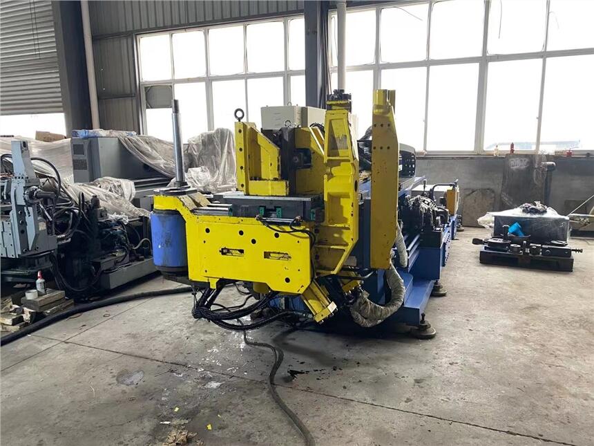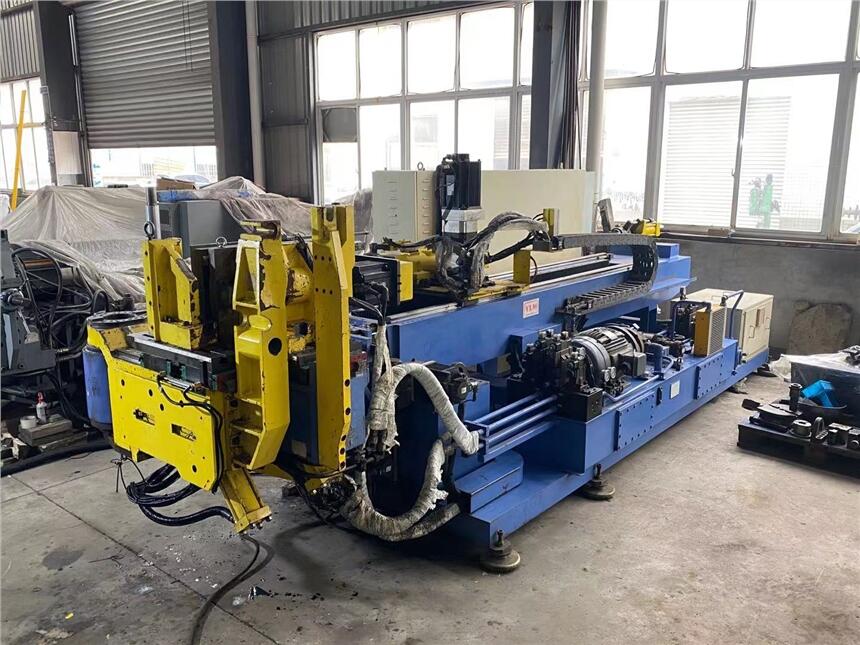 台湾二手数控弯管机展厅专业研发销售台湾四大品牌数控弯管机,在位台湾颖霖原装进口CNC90六轴数控弯管机一台,送料伺服马达日本安川11kw,(具有正面辅推及推卷弯功能),弯管伺服马达15kw,工业电脑控制,15寸触控屏幕,减速机采用德国ZF。德国力士乐的直线导轨,该机属于多层机型,可以安装九层弯管模具,具有内外束机构,适用于汽车排气管,汽车转向杆,座椅骨架管,后仪表盘横梁管,车架管汽车底盘管弯曲,同事可应用于工程机械油管,健身器材,锅炉等压力容器管路,有意者联络我手机18001561858,可以现场试车!