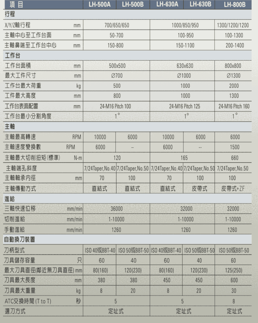 台湾丽驰科技股份有限公司LH-500B卧式加工中心