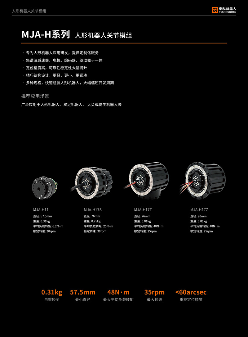 MJA-H系列轻量化人形机器人关节模组-多种规格-支持定制-源头厂家-泰科机器人