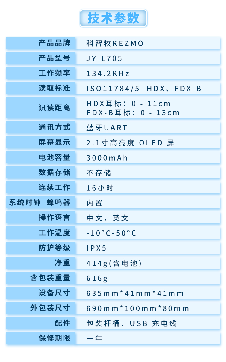 读取标准 | ISO11784/5 HDX、FDX-B | ||