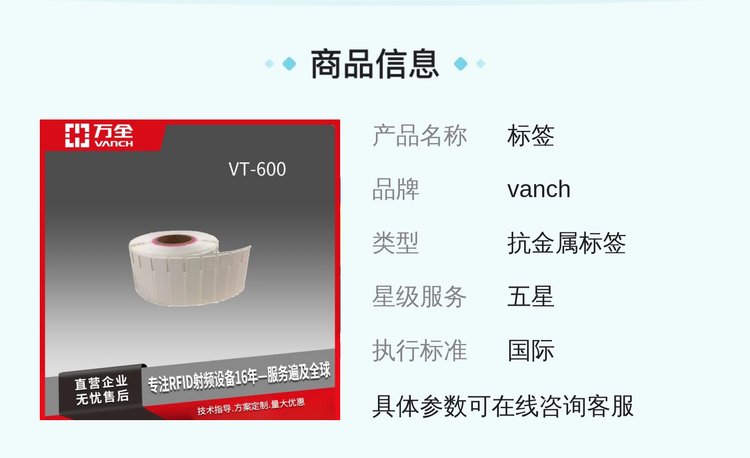 vanch抗金属标签国际执行标准五星服务保障公司出品成品效果精致