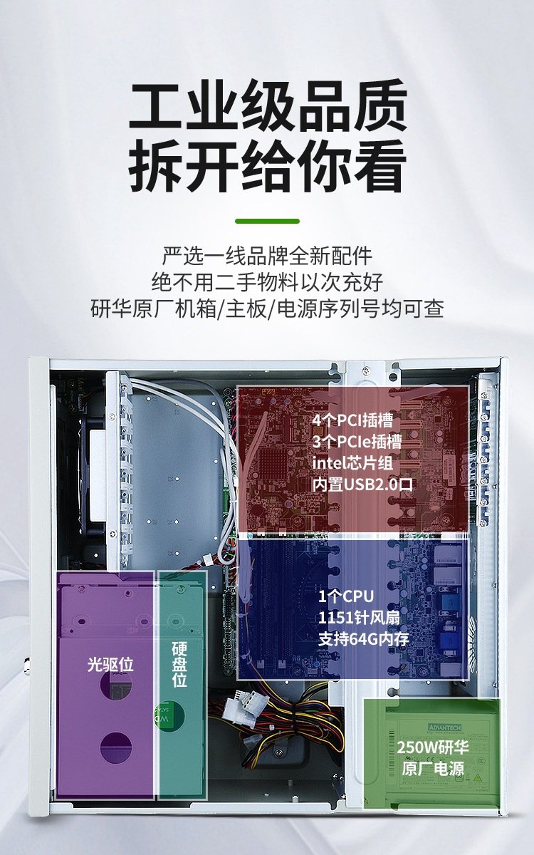 研华IPC-610L/IPC-510 原装台式主机 4U机箱服务器 搭2-13代电脑主板 品牌 | ADVANTECH研华 | ||