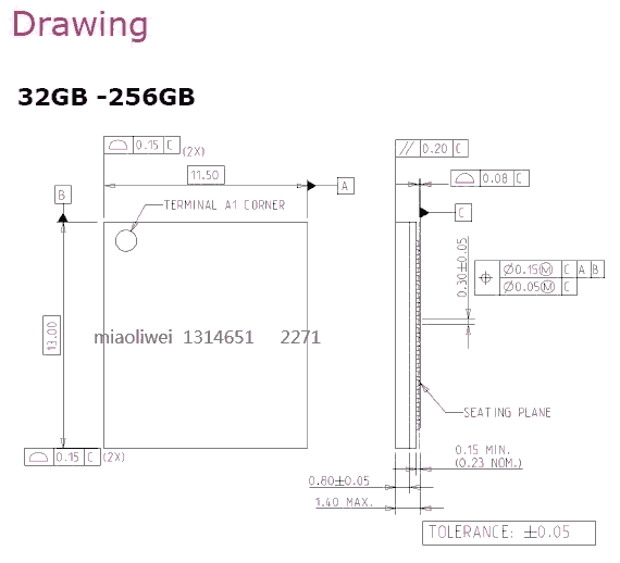 11.5 x 13.0 x 1.65 mm (*see detailed in the above mechanical drawings) |