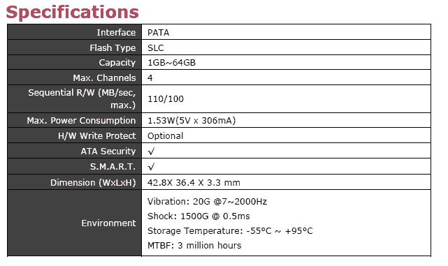 CF 闪存卡为使用于PATA接口的小型尺寸装置,适用于各种工业以及任何恶劣的环境。