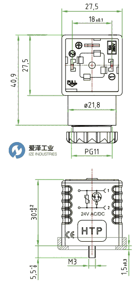 HTP电磁阀插头G1TU2VL1技术参数及尺寸