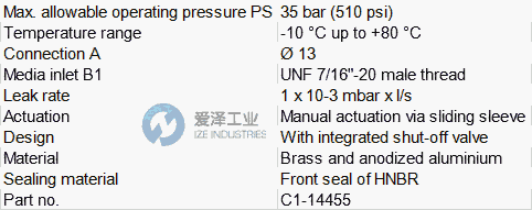 TW108 服务连接器的额定最大电流为 工作压力为 35 bar,具有用于车辆高压连接端口的红色编码滑动套筒和内联介质入口 UNF 7/16“-20 外螺纹 (SAE J513-45°)。