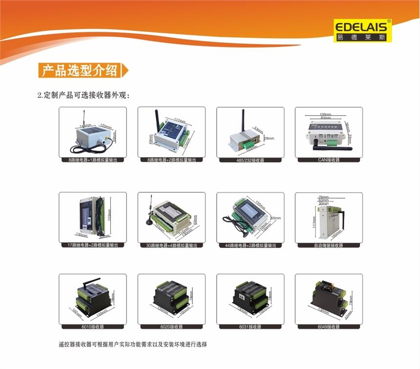 8.遥控器可集成驱动板:0~800mA输出、0~-+10V输出、0~10V输出等,可直接驱动比例阀以及液压阀等器件