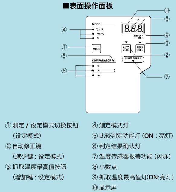 测定时,按下 PEAK HOLD 键,可显示温度MAX值。
