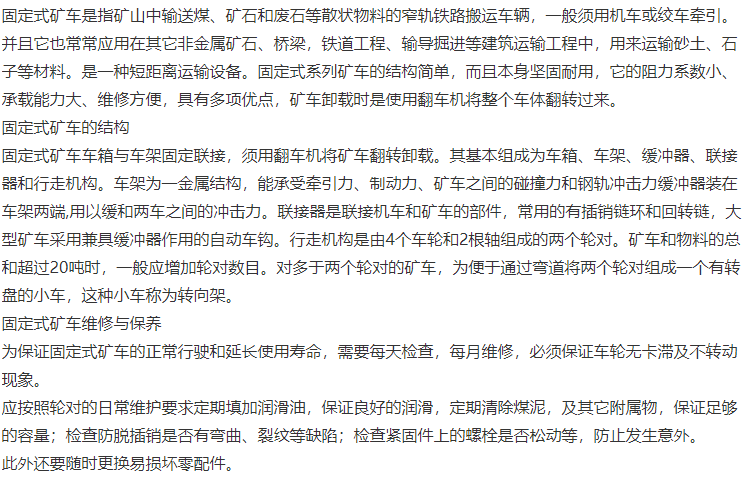 固定式矿车矿山固定式矿车输送煤块矿用车参数巷道运输设备