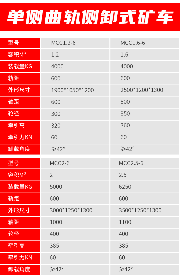 型号 | 单侧曲轨侧卸式矿车 | ||