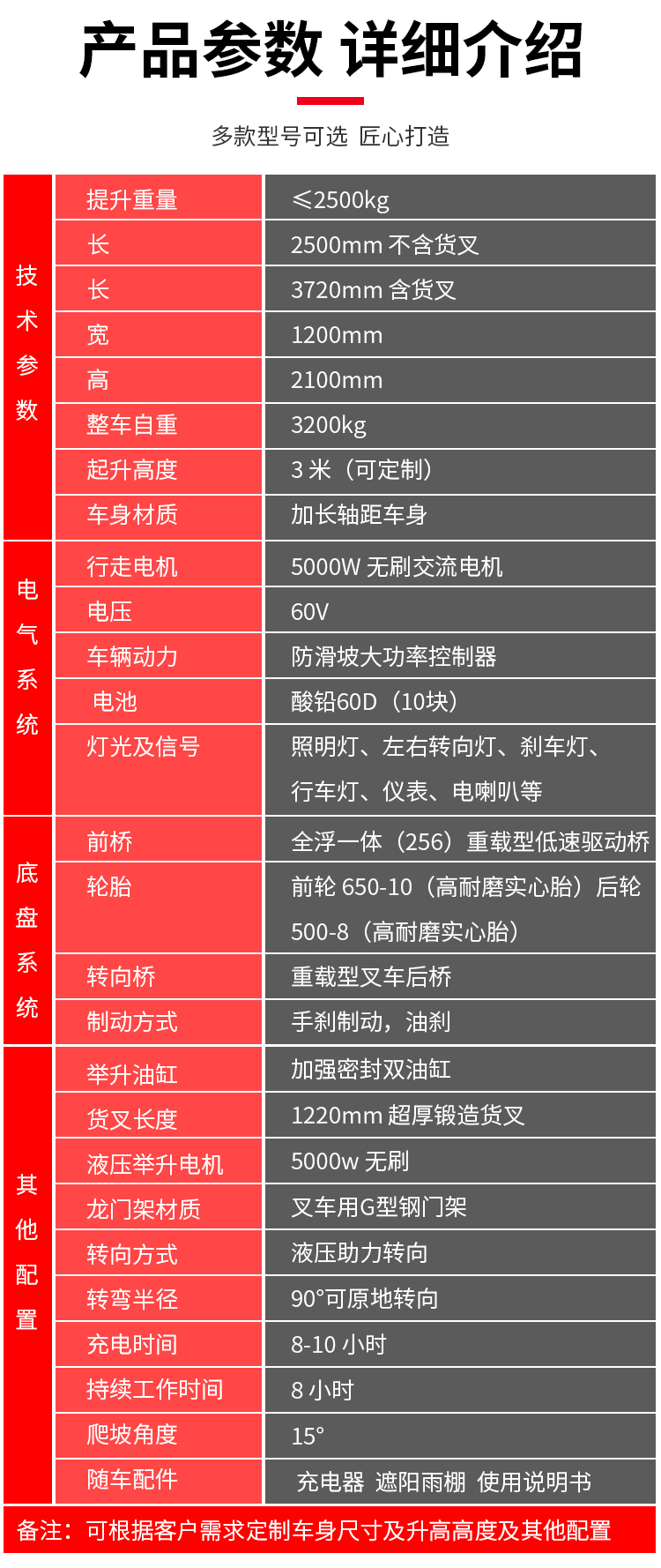 规格 | 电动叉车 | ||