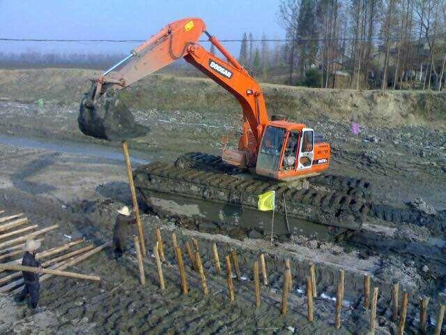公司大量租赁水陆两用挖掘机,型号全,性能好,价格优. 可在一百五十厘米以下的水面上和淤泥,沼泽地作业 (可担任河道清淤、修堤、公路、渠道、河堤的挖掘、堤埂加固、鱼池开挖、滩涂开发、可给装载机上土方。) 水陆两用挖掘机,是专门为工程船舶及常规工程机械无法进入和施工的沼泽地,海涂,淤塞沟渠等111区域进行开挖,清淤而研制的。是一种可自行出入泥沼,水域及河坡堤岸