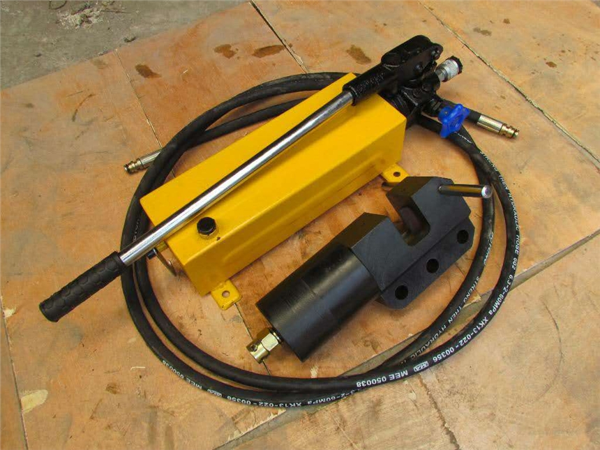 1、矿用环链液压剪用于切断Φ26-52mm圆环链金属材料。使用时根据的圆环链直径大小调整螺栓,把锚链圆环链放置在与刀头成直角的位置.