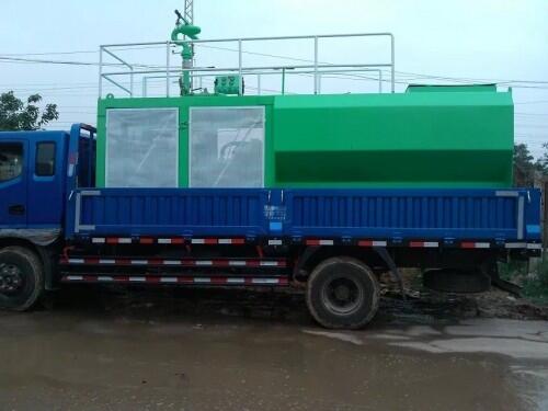 以水为载体,以柴油内燃机为动力,可一次性将草种、花卉、林木等种子与肥料、高分子粘合剂、保水剂等材料混合搅拌,且还特别具有能允分掺与大量木屑、纸纤维、棉纤维、桔杆、黄壤土、红壤土等改良土壤的有机混合,大比例、高浓度泥浆体材料均匀喷射的专用设备。
