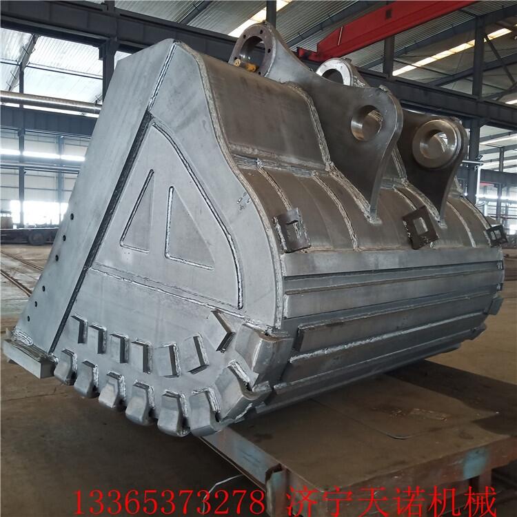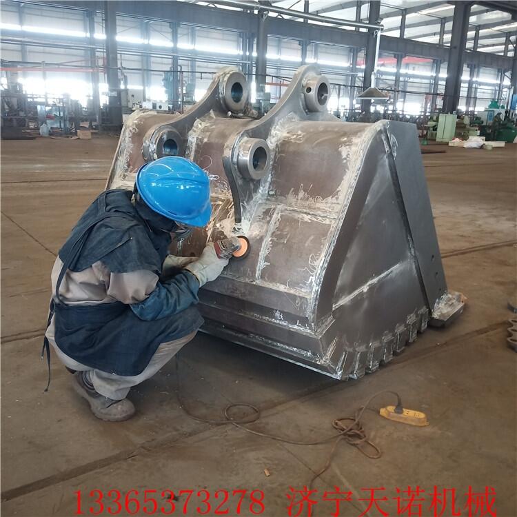 挖机岩石挖斗特点:高应力部分特别加强,易磨损部分材料更厚,同时底部增加加强筋。土中混有较硬石块、次坚石、风化石的挖掘;坚石、矿石的装载等重作业。各种规格斗容量均可定制生产。挖斗斗体选用优质耐磨低合金钢板,焊材选用低氢型,具有良好塑性、韧性和抗裂性强等特点。岩石型挖掘机挖斗主要有一下四个特点: