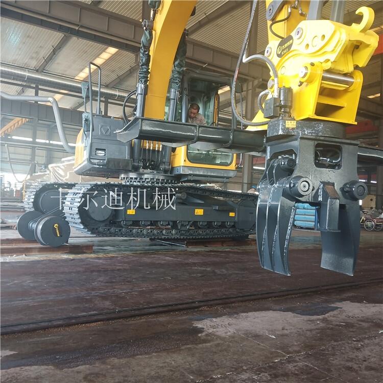 挖掘机枕木夹具是我公司新设计生产的铁路维护属具工作装置之一,它是可以通过快换连接器安装到挖掘机上的前端工作装置。适用于5-16吨挖掘机使用。