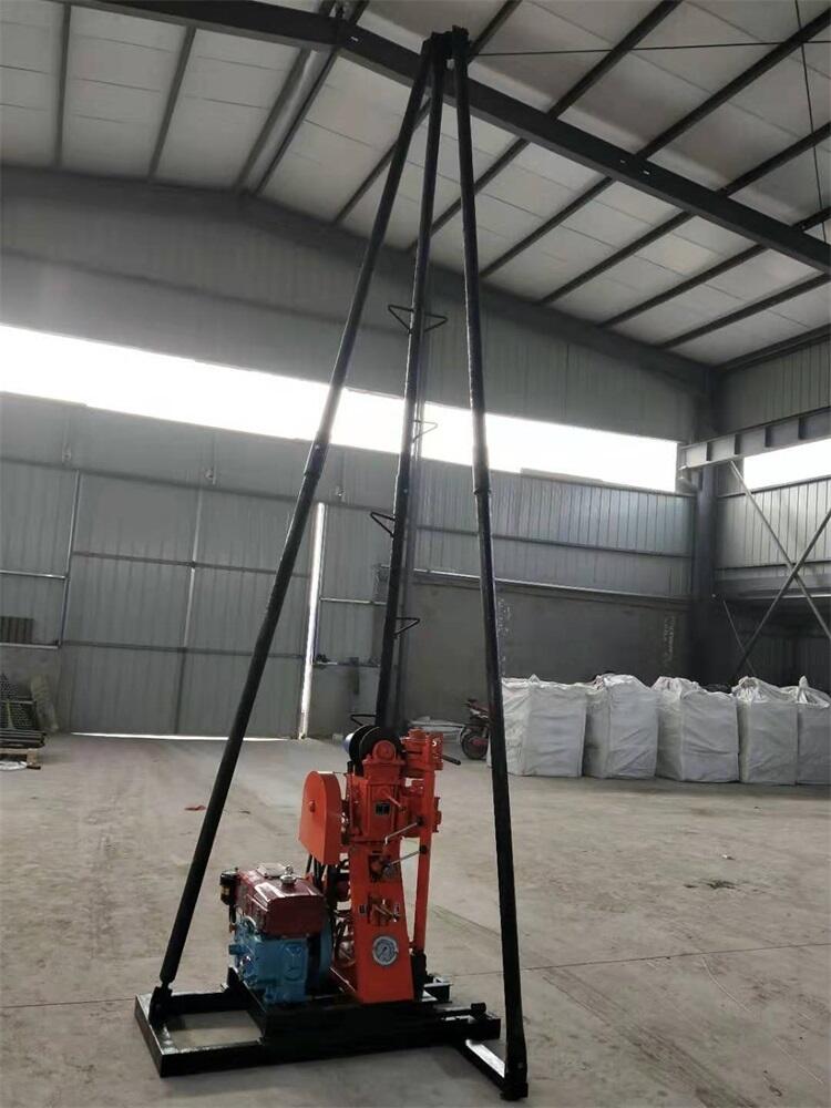 4.该型号轻便钻机,配备自动卷扬提升系统,与三角塔架部分组合使用,节省劳动力强度,提高工作效率。