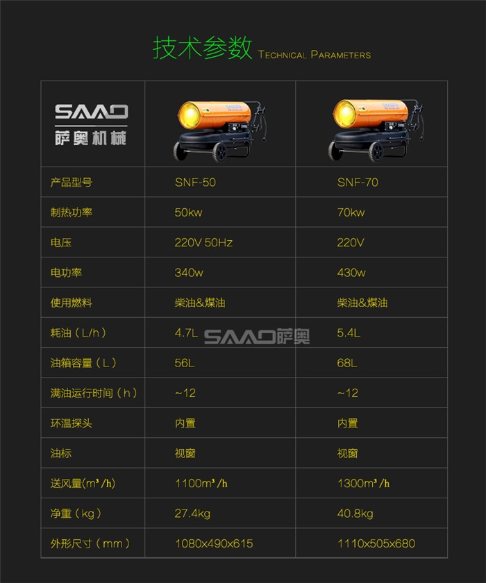 萨奥加热面积大耐高温材质的大棚用燃油小钢炮70kw价格