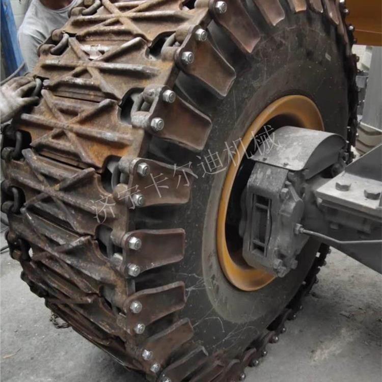 设计使用寿命(日工作八小时)为三年,且可对履带分开检修、更换。采用了履带式设计,具有与地面接触面积大,安装后与轮胎贴合度更紧密的特点,使设备具有更大的抓地力,其防滑效果远优于传统防滑链条。