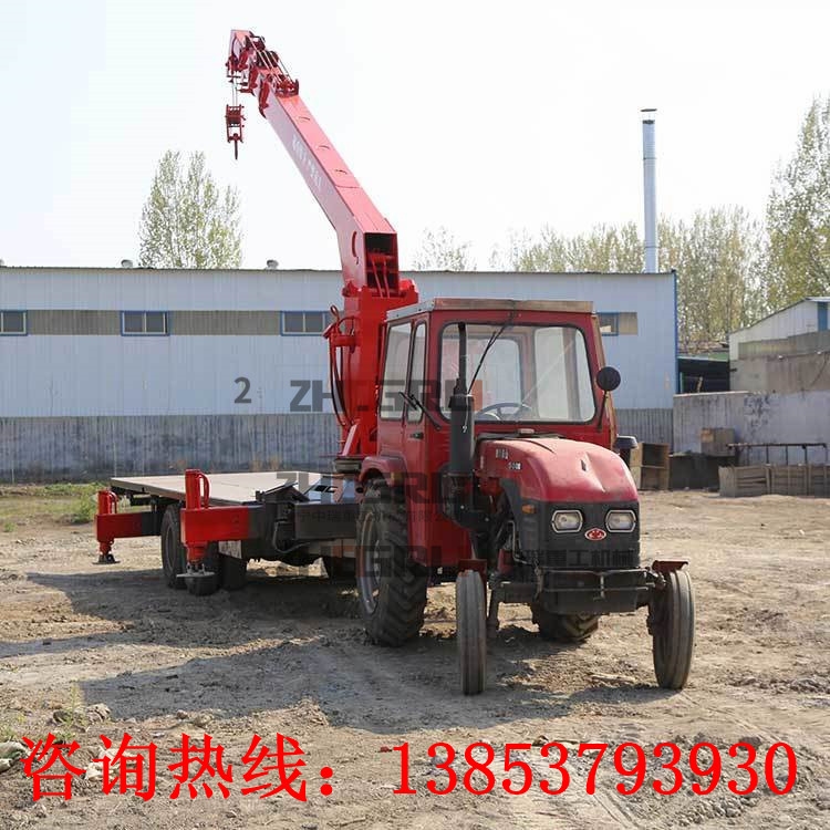 拖拉机起重机大大摆脱了普通吊车受地形限制的局限性,可以方便引用于狭窄的小巷道路,乡间田野,水田,丘陵等地带。拖拉机平板吊车特别适合于电力施工单位及其他在狭窄区域能作业的施工单位。拖拉机平板吊是我厂设计制造的一种用于吊装运输电线杆、钢筋等尺寸较长货物的设备,整车配置可根据要求定制。
