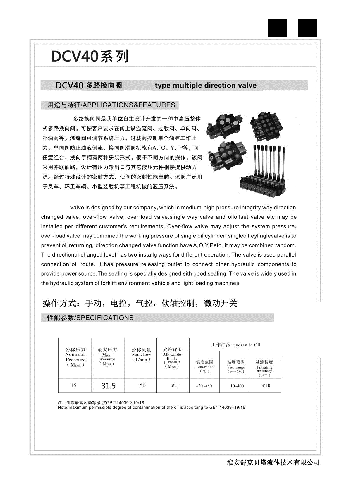 DCV40-3OT-DC24整体式电液控液压多路阀