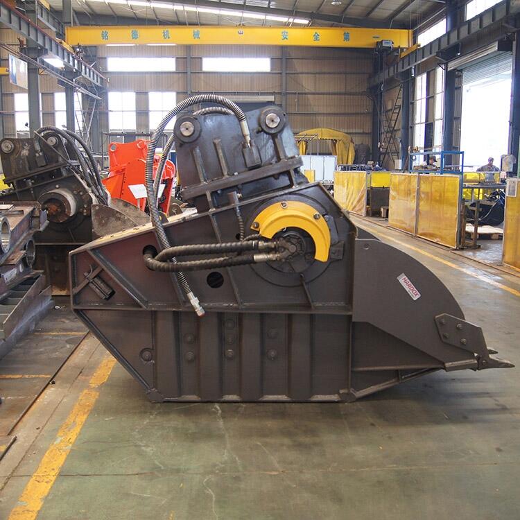 对应各种挖掘机机型(8~50吨)的混凝土石料回收再利用的再生碎料破碎斗颚式破碎斗,可以减少工程现场混凝土块的搬运,购买碎石产生的运输等工程成本。另外,该产品还可减少由于车辆运输导致的交通堵塞,交通事故,降低城市噪音,道路维护成本,以及减少二氧化碳排放等,促使混凝土废料在工地现场内直接回收再利用。 挖掘机破碎斗适用于破碎坚硬的岩石, 广泛应用于采石,矿山,砾石以及废弃材料和沥青的回收利用等。破碎铲斗适合于重量超过18.5吨的挖掘机,破碎铲斗紧凑,多用途并适用于破碎和回收处理惰性材料,或因拆除产生的建筑材料(道路工程-基建-管道及管线)。 与较大的机型相比,尽管其体积小,自重轻,但产量可达到20吨/小时。 适用于破碎坚硬的岩石, 广泛应用于采石,矿山,砾石以及废弃材料和沥青的回收利用等。