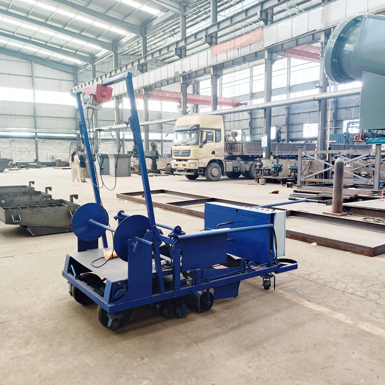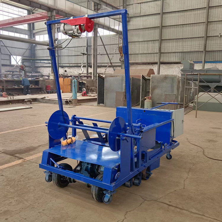 高铁防水卷材铺贴机适用于高铁、桥面等大平面防水需求,铺料速度快、效果好,效率远超人工摊铺,是防水施工的好帮手!行走速度可自行调节,电控箱里有变频器,通过旋钮可以调节行走速度,火焰大小可调节,卷材可以调远近,卷材较重可通过提升机放在卷材托辊上,有离合器,方便启停,空压机控制驱动轮可随意调整设备运行方向