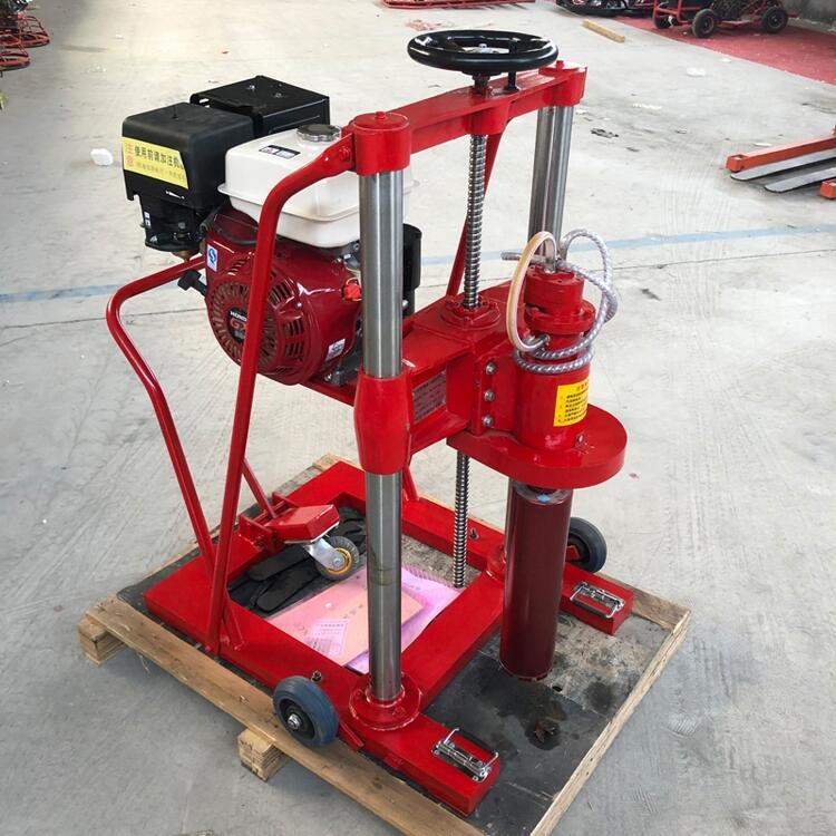 电动取芯机结构组成主要结构为两立柱立式结构钻孔方向垂直向下,由汽油发动机、变速箱、主轴、钻头、立柱、底座升降结构、冷却给水泵、行走机构等主成。