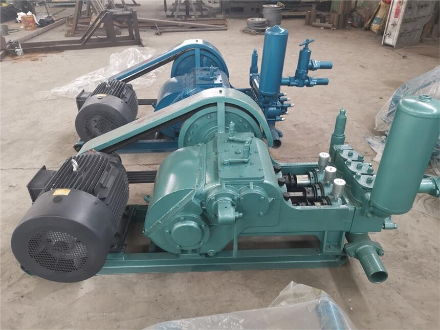 2.泥浆泵正常工作压力不得过额定压力80 %。 在高压力工作的连续时间不得过1小时。 要密切注意压力表的示值变动,泄压并排除堵塞,泄压方法为:在注浆口处设置阀门和活接,当浆液注满后关闭阀门,然后慢漫地拧松活接,缓缓排出管内余气和浆液。