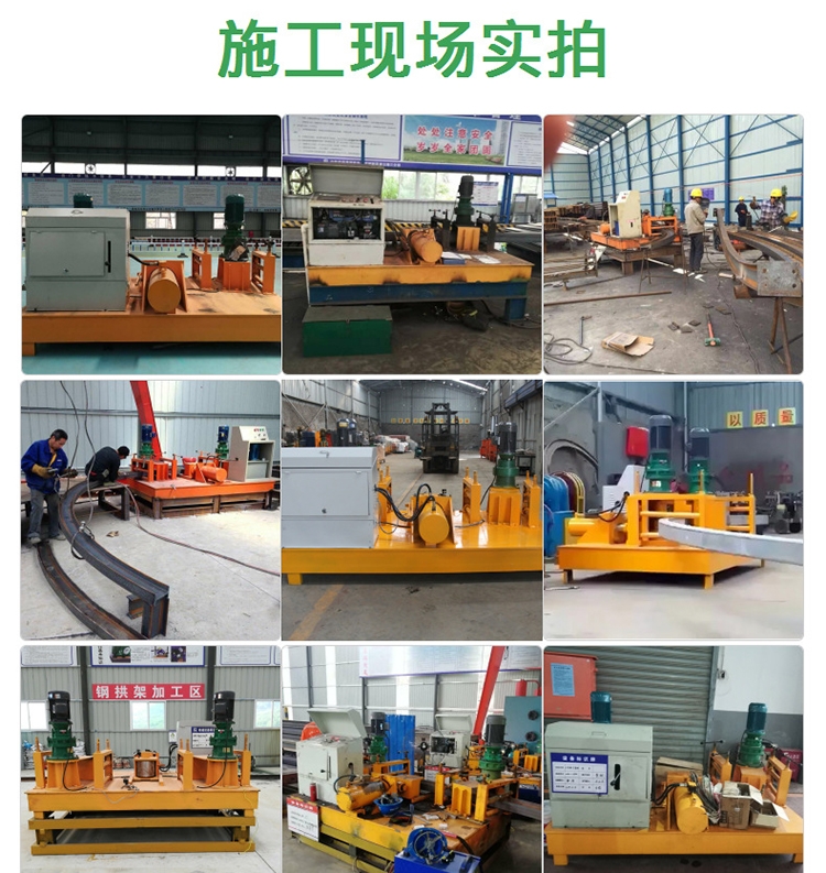 根据弯曲型钢的类别可分为:工字钢弯拱机、槽钢弯拱机、U型钢弯拱机、H钢弯拱机、角钢弯拱机、轨道钢弯拱机、方钢弯拱机以及一些特种型钢弯拱机。