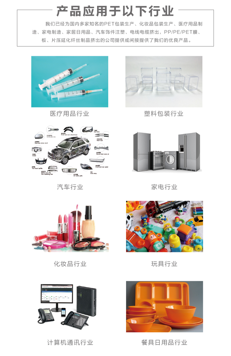 适用原料 | PA、PP、PE、PET、PC、 | ||