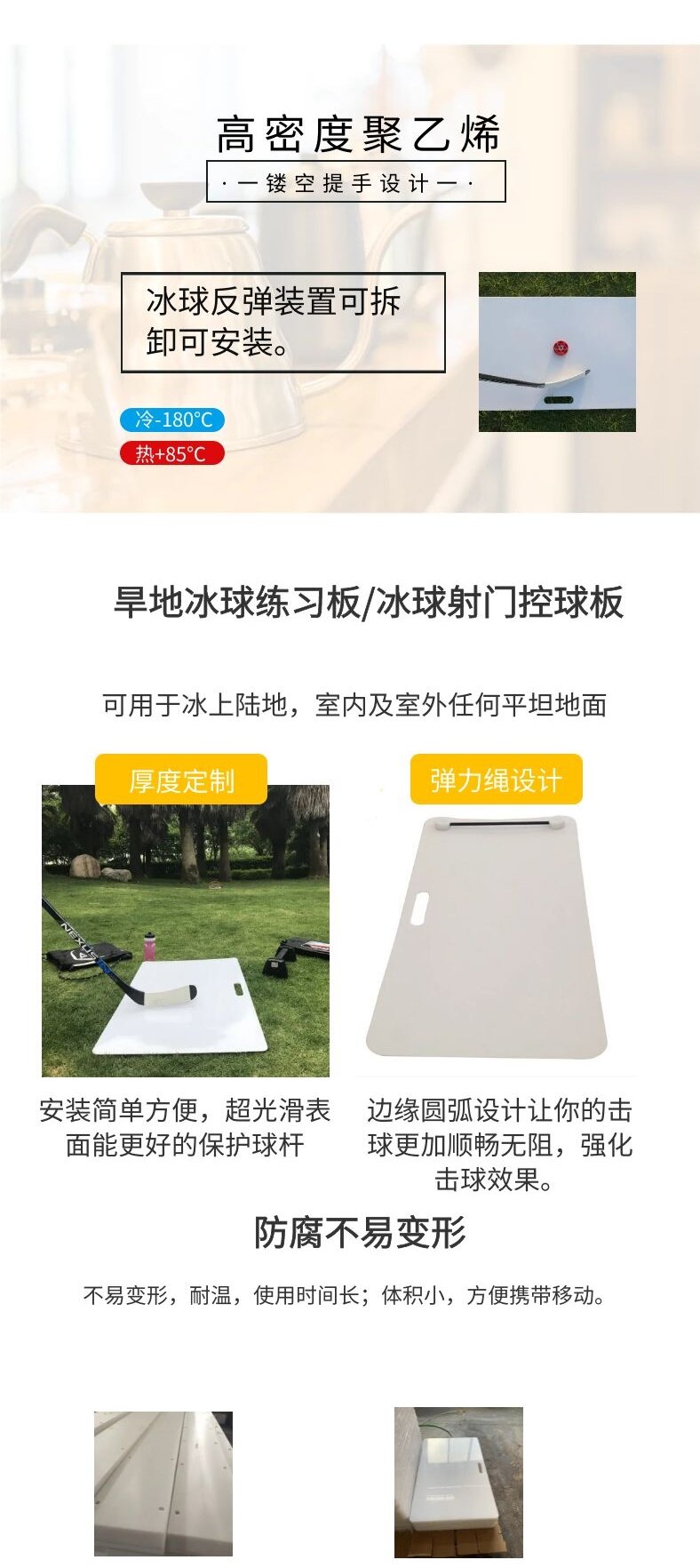 津鸿橡塑高分子聚乙烯冰球训练板带弹力绳抗冲击UHMWPE射门回弹板