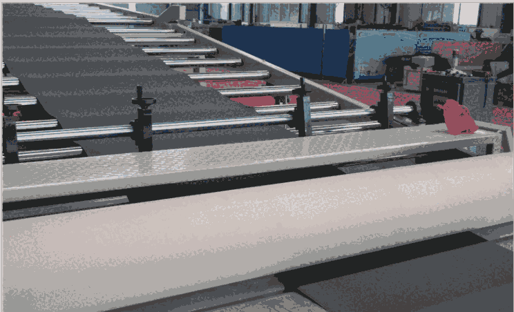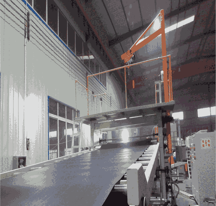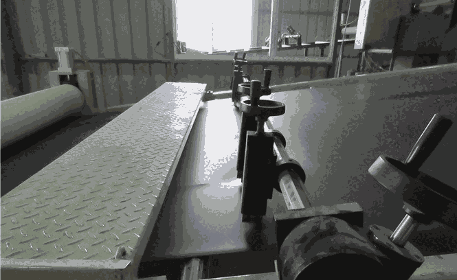GLD单螺杆 →2500mm成型模具 →三辊挤压表面处理→板材电晕处理→牵引机 → 切割机 → 堆放 →成品