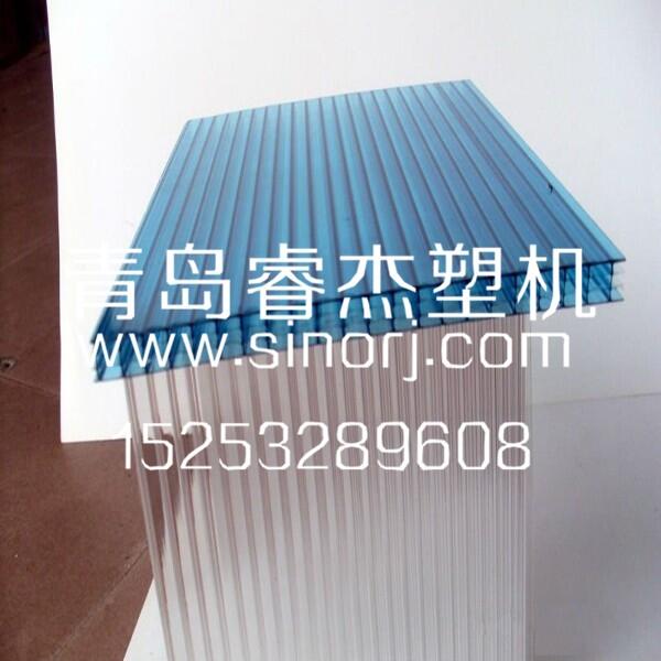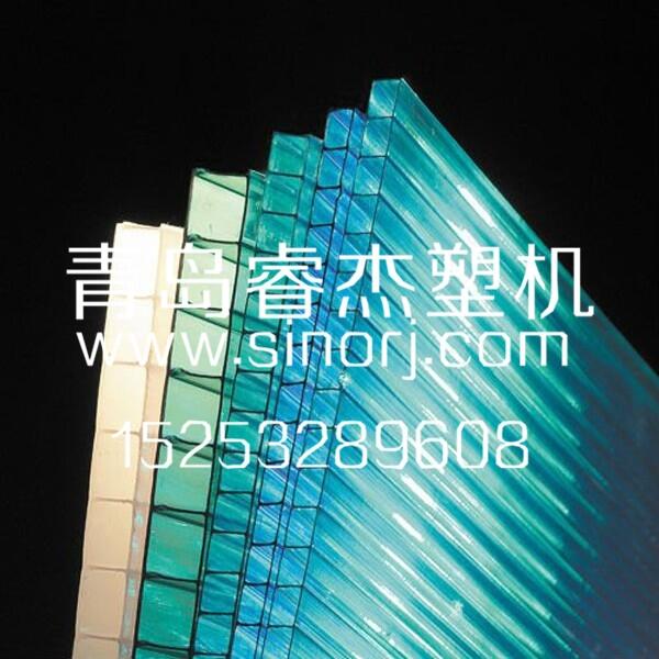 PP塑料格子板阳光板生产线 PP中空格子板可做成各种颜色,且无毒无味、防潮湿、耐腐蚀,可印刷。 我公司根据市场需要,自行开发出PP中空格子板生产线。该生产线是直接挤出成型中空格子板材的专用设备,其制品表面光洁、美观、抗压,广泛应用于建筑业、包装业及装饰业中的诸多领域。通过更换定型装置,既可生产LDPE中空格子板材,亦可生产农用、建筑用透光保温的PP、PE中空格子板材。