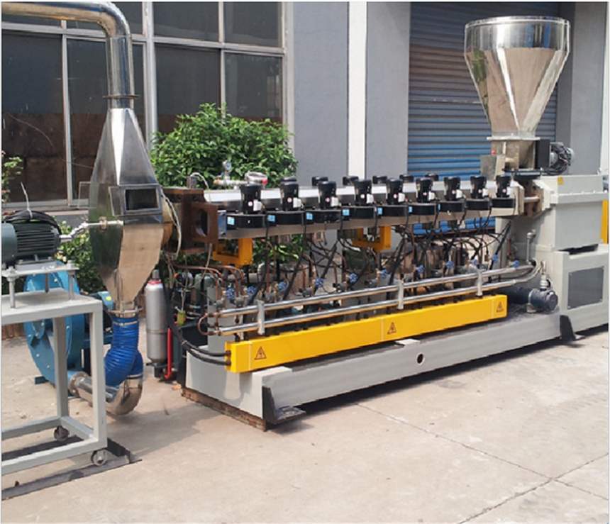同乡平行双螺杆挤出机是一种高效的混炼,挤出设备,此生产线主要用来塑料混炼,塑料填充,及造色母粒。