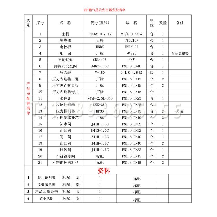 类型 | 双燃料蒸汽发生器 |