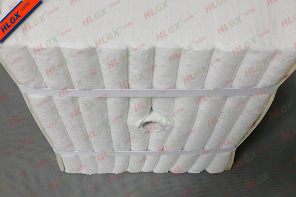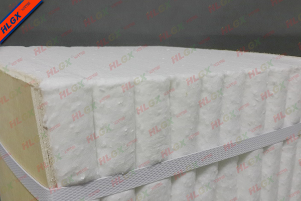 ◎各种陶纤模块,是用对应材质的陶瓷纤维针刺毯,按纤维组件结构、尺寸,在专用机械上加工而成。在加工过程中,均保持一定比例的压缩量,以保证陶纤模块壁衬砌筑完毕后,由于每块陶纤模块在不同方向的膨胀,使陶纤模块之间相互挤成一个无缝隙的整体,陶纤模块均能通过各种形式的锚固件直接固定于工业窑炉炉壳钢板锚固钉上。