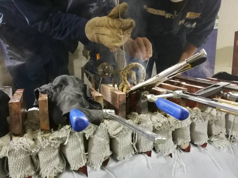 6、 焊接:中频感应焊接或焊接过程中的辅助加热,可应用于高工艺求的焊接场合,如液态扩散焊、钎焊等应用场合.如发电机定子线棒端部和引线的银铜焊接、大型空调薄壁管或铝管焊接、输油管道焊接与不停油修复,变压器绕组钎焊。