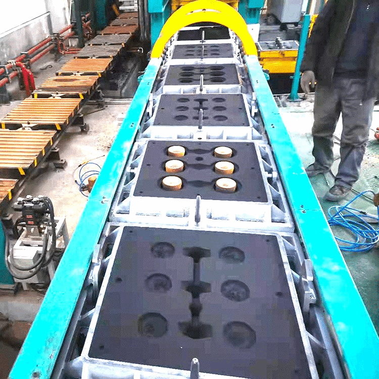 全线有30多台套机械、电控、液压设备及砂箱、小车组成。其中包含落砂、分箱、箱面及内腔清扫、造型、翻转、铣浇口、扎气眼、合箱、紧箱钩、铸型冷却等诸工序。造型线分为落砂、造型、下芯、浇注、冷却五个区段。并且,其设有手动、单机自动、自动、不造型、不加砂、不落砂、不吹气、吹气填砂+吹气予紧实、冷却道选择等多种工作制度。