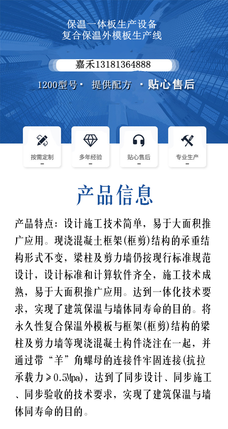 用途 | 生产保温免拆模板 一体化板保温板 | ||