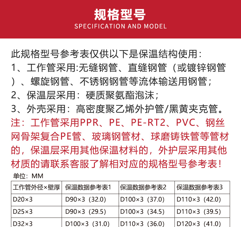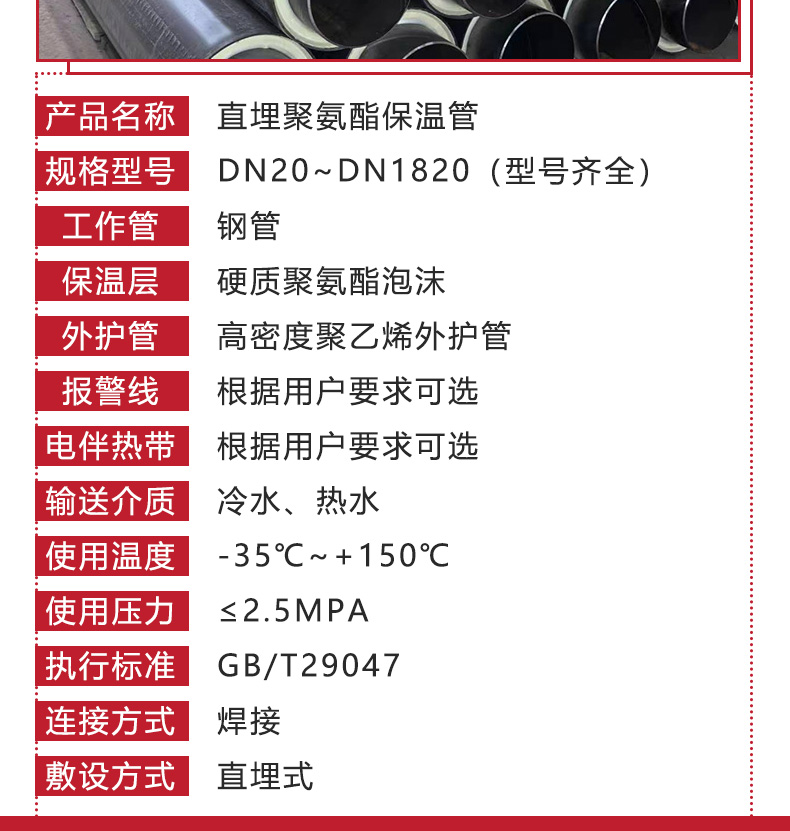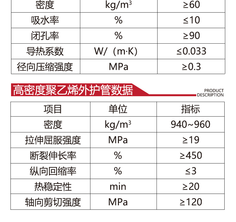 材质 | 钢管 硬质聚氨酯 高密度聚乙烯 | ||