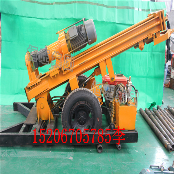 轮式气动水井钻机机 HQZ200型自行式气动钻井机 HQZ系列水井钻机是一种轻型、高效、多功能的钻凿孔设备,它主要适用于钻凿水井、农业灌溉井、地热空调孔及其他用途的井孔,尤其适用于山区和岩石地层的取水工程。该钻机可在不同地层上进行穿凿工作,钻孔直径可达254mm。