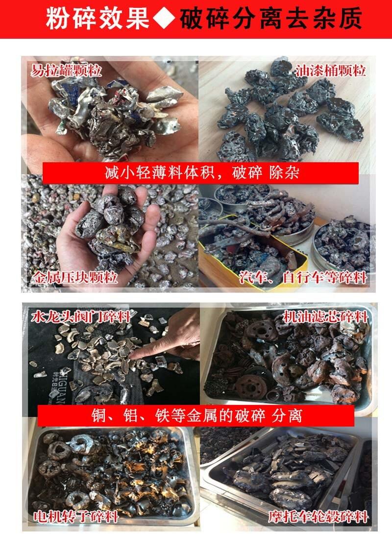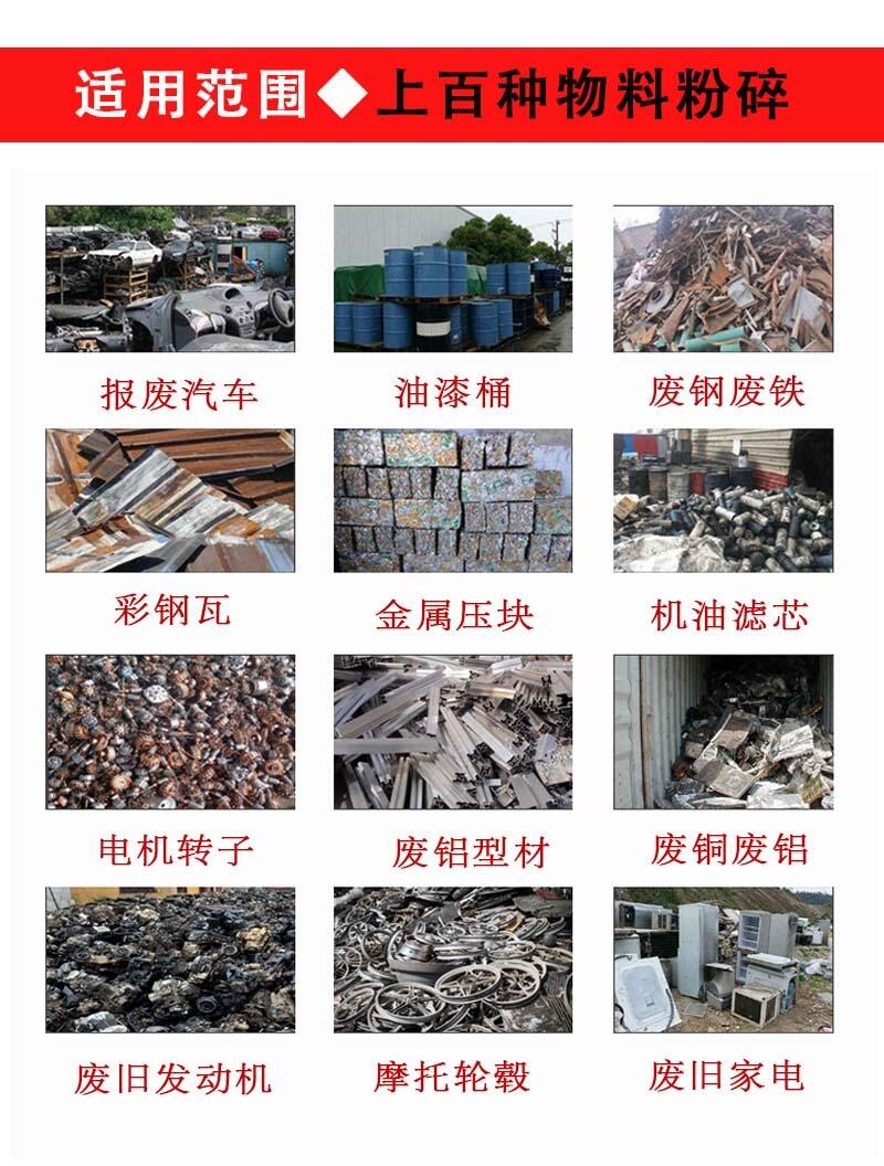 摩托车架破碎机又eww叫预碎机破碎机,是专门用于粉碎摩托车架等预碎机的vsd机器,该机根据产量,出料大小分为十几个型号,机身通体采用加厚钢板制成,内衬以及筛网锤头为合金铸造,重量大分量足,对于各种金属废料有非dsw常好的破碎效果。通过破碎可将物料打成一定规格大小的颗粒,并将摩托车架中杂质和金属分离开。再通过磁选机,就可以轻松完成摩托车架中铁的自动回收!摩托车架属性决wew定了破碎机设备型号,不同的金oty属废料,材质、性质、成份不同,软硬度不同,对症下药才能获得大利益。常见废料比如摩托车架、薄铁皮、易拉罐此类型软质金属料,比较好容易破碎,选择小型号的摩托车架破碎机,不仅破碎效率高,而且成本也不会浪费。