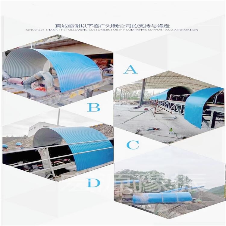 皮带输送机主要由机架、输送带、托辊、滚筒、张紧装置、传动装置等组成。长度:4米,5米,6米,8米,10米,12米,15米等,防雨罩/防雨棚/防尘罩/防护罩。常用材质:碳钢、合金钢、不锈钢、耐磨钢、玻璃钢等;不锈钢材质(201/304/316/316L)可做任意尺寸规格参数型号全.带宽:B500-B600-B650-B800-B1000-B1200-B1400-B1600-B1800-B2000-B2200规格型号特殊尺寸可定做。适用于大跨度输送机或皮带机,一次成型整体出模,便于运输、安装。运行维护费用低、检修方便:玻璃钢输送机防雨罩上预留观察窗、端部预留检修门,方便工人维修且不影响设备正常运转。将防雨罩从机架的一端向另一端以“品”字型安装,安装时防雨罩上严禁站人。