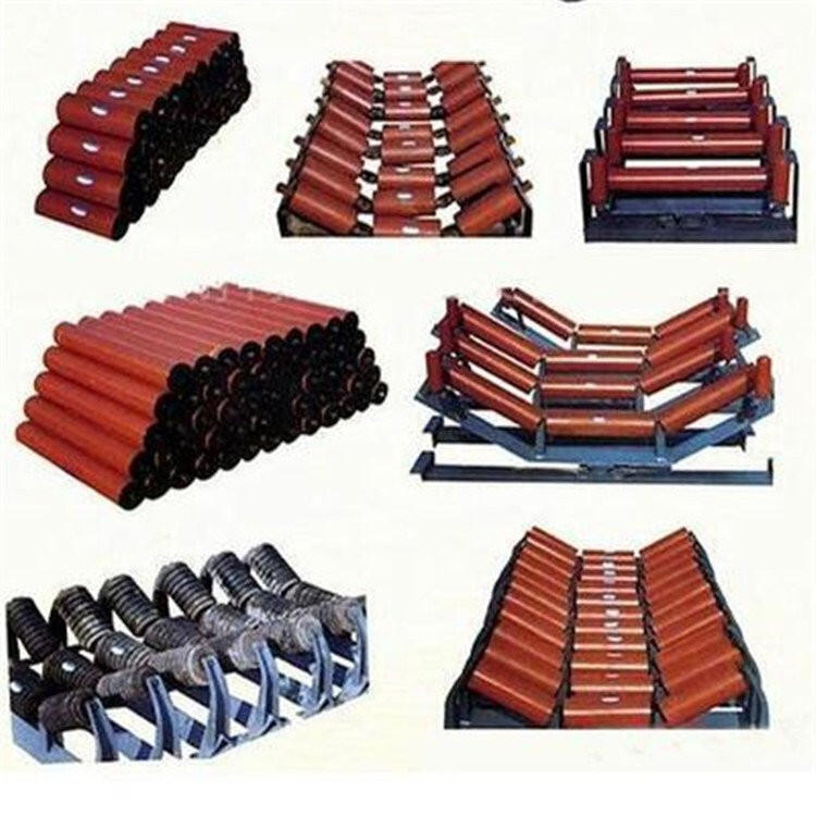 皮带托辊型号89*240 *305 *375 *600 *700 *750 *1150等75型II型托辊组 89*305槽型托辊平行上下托辊 铁烤漆托辊,尼龙托辊,橡胶托辊槽型托辊缓冲托辊平行托辊螺旋托辊梳形托辊皮带托辊的作用是:支撑皮带,减少皮带在运行过程中的阻力;形成皮带凹道,防止皮带上的煤外溢;保证皮带垂度不超过一定限度使皮带平稳运行皮带输送机托辊广泛应用于煤矿、电力、钢铁、化工、建筑材料等领域,可用于输送各种物料,如煤炭、矿石、矿渣、水泥、化肥、粮食等托辊按其用途分类为调心托辊、缓冲托辊、槽形托辊、平行托辊。调心托辊的作用是纠正带式输送机皮带的跑偏,通常输送机的重载段上安装回转式槽形调心托辊