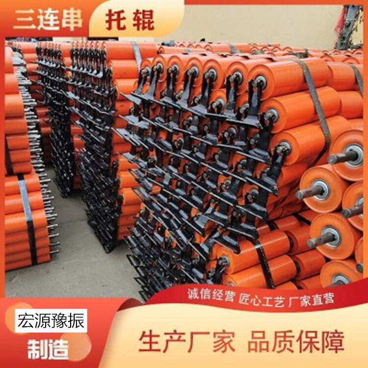 皮带托辊型号89*240 *305 *375 *600 *700 *750 *1150等75型II型托辊组 89*305槽型托辊平行上下托辊 铁烤漆托辊,尼龙托辊,橡胶托辊槽型托辊缓冲托辊平行托辊螺旋托辊梳形托辊皮带托辊的作用是:支撑皮带,减少皮带在运行过程中的阻力;形成皮带凹道,防止皮带上的煤外溢;保证皮带垂度不超过一定限度使皮带平稳运行皮带输送机托辊广泛应用于煤矿、电力、钢铁、化工、建筑材料等领域,可用于输送各种物料,如煤炭、矿石、矿渣、水泥、化肥、粮食等托辊按其用途分类为调心托辊、缓冲托辊、槽形托辊、平行托辊。调心托辊的作用是纠正带式输送机皮带的跑偏,通常输送机的重载段上安装回转式槽形调心托辊
