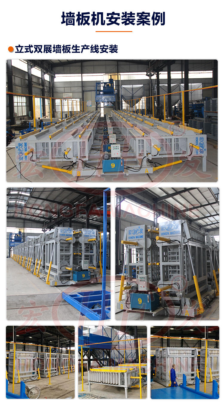广西宏发生产的轻质复合墙板机,采用先进的循环流水线生产,设备机械自动化代替大量人工,同时降低劳动成本集成化控制减轻劳动强度提高生产效率。宏发重工提供个性化定制墙板成型设备,多种墙板成型机尺寸可根据您的需要调整,免费提供生产技术材料配方,负责安装调试、培训技术工人直至设备投入生产,售后无忧,欢迎广大朋友咨询交流!