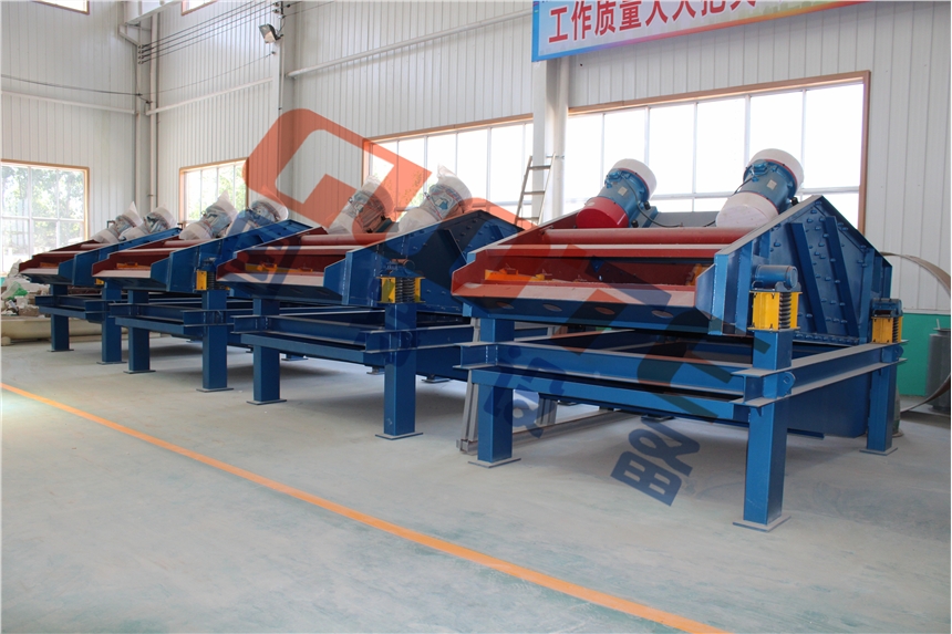 直线振动筛采用双振动电机驱动,当两台振动电机做同步、反缶旋转时,其偏心块所产生的激振力在平行于电机轴线的方向相互抵消,在垂直于电机轴的方向叠为一合力,因此筛机的运动轨迹为一直线。其两电机轴相对筛面有一倾角,在激振力和物料自重力的合力作用下,物料在筛面上被抛起跳跃式向前作直线运动,从而达到对物料进行筛选和分级的目的。