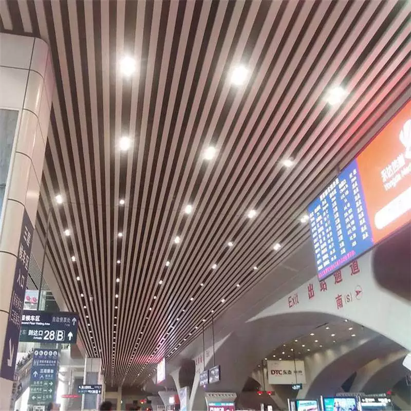 铝方通又叫U型挂片,垂直的方通吊顶通透宽敞,便于空气的流通,排气散热的同时能够是光线分布均匀,使整个空间感觉宽敞明亮。