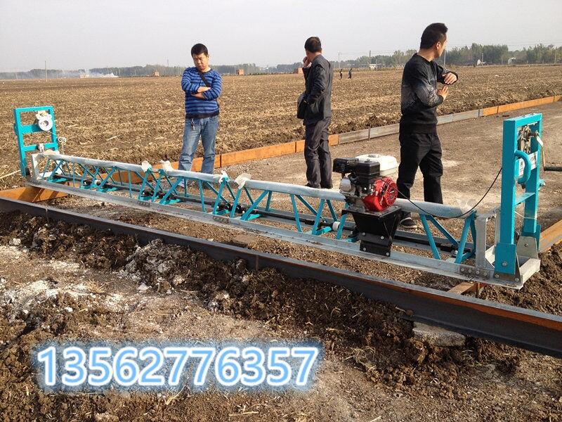 这款机器的使用方法是收到货之后把标节与标节之间通过万向节及螺栓连接起来,,调整好您需要的拱度。把机器架在槽钢上面,吧牵引绳的一头固定好,连接好动力就可以使用了。施工人员不需要来回走,更无需使用振动棒辅助,一趟过去即可完成提浆,压实,整平,效率极高,效果。如果运行过程中出现跑偏可以用牵引绳调整一下。